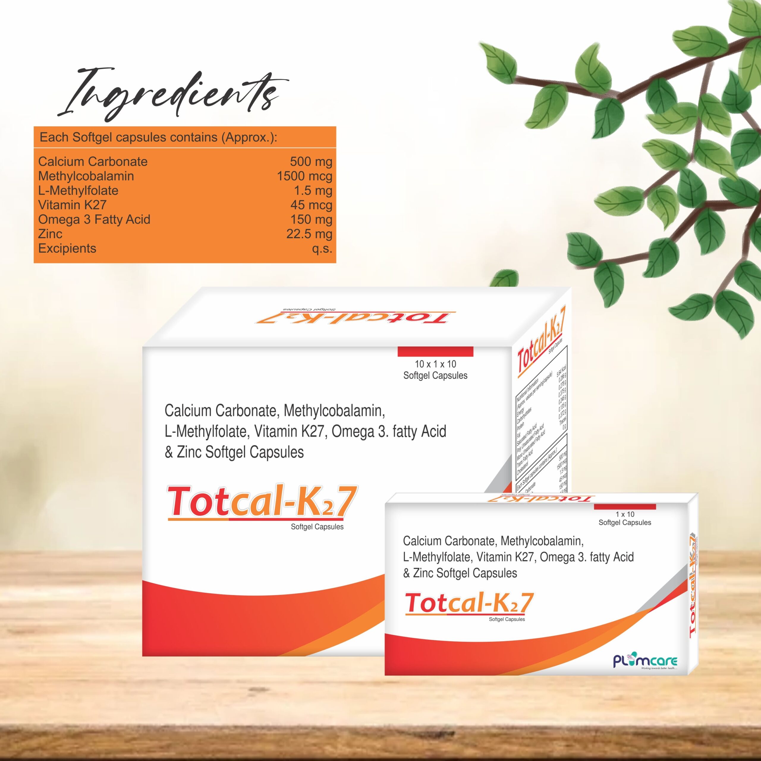 Achieve stronger bones and improved overall health with our premium Calcium Carbonate, Methylcobalamin, L-Methylfolate, Vitamin K27, Omega-3 Fatty Acids & Zinc Softgel Capsules. This unique formulation is packed with essential nutrients that play a critical role in bone density, joint health, and immunity support, making it ideal for both men and women.