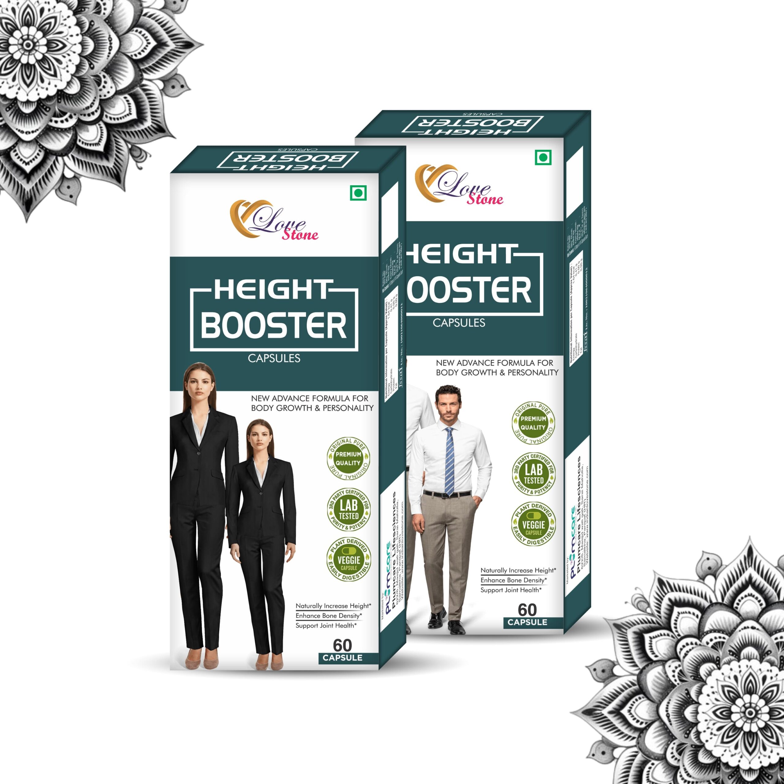 Boost your height naturally with LOVE STONE Height Booster Capsules. This advanced formula supports height growth, bone density enhancement, and muscle and joint health. Suitable for men, women, girls, and boys.