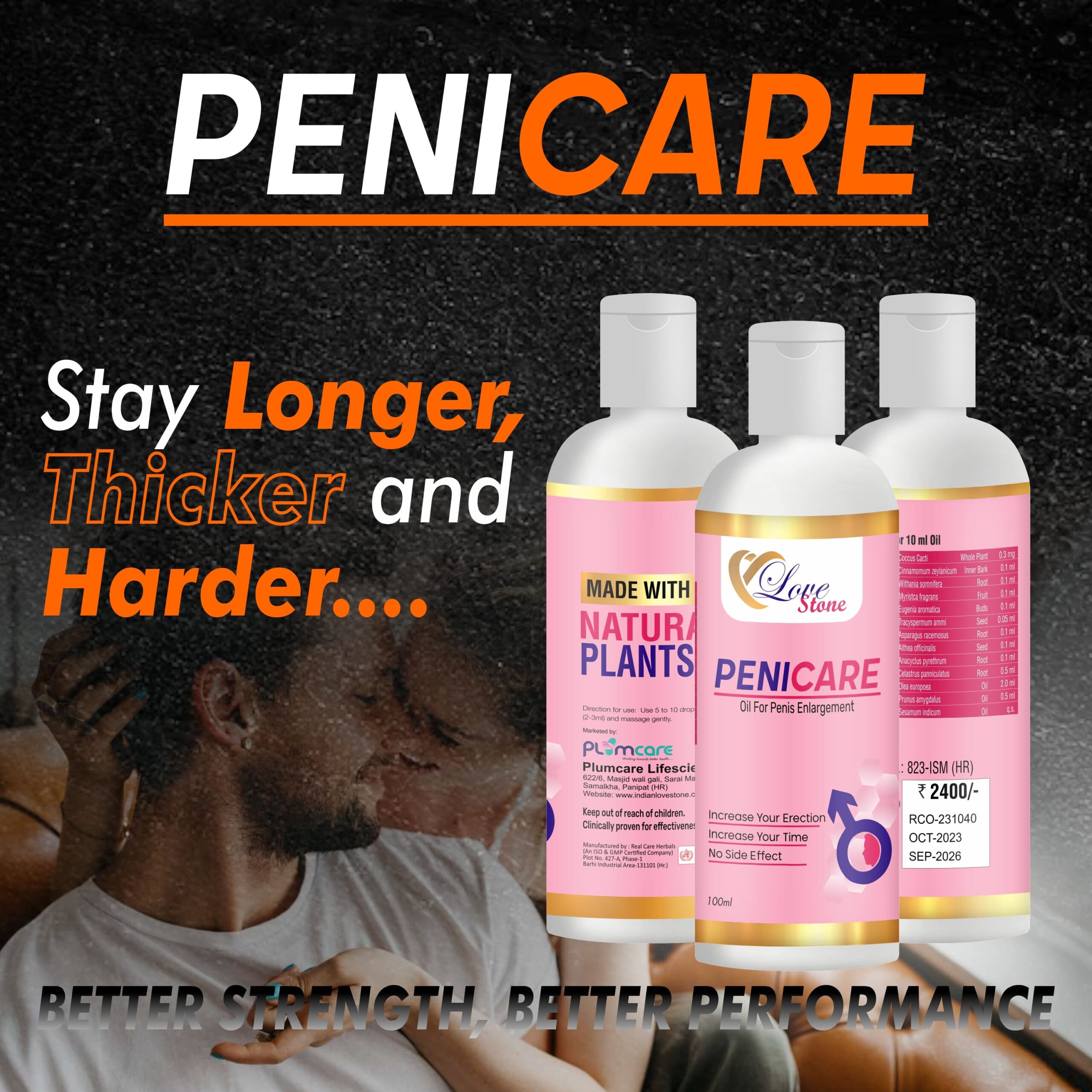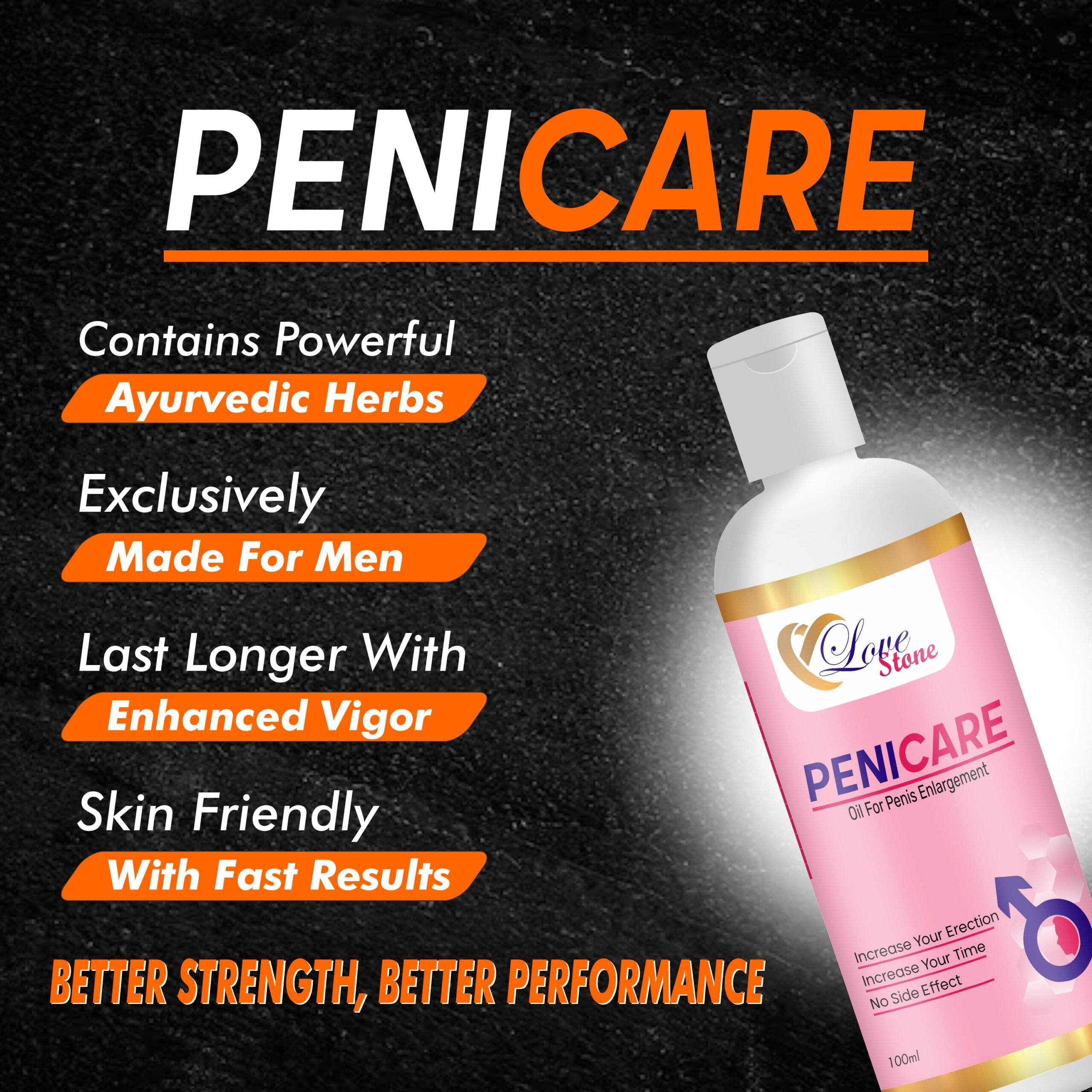 Lovestone’s Penicare Oil is manufactured by Plumcare Lifesciences, a trusted name in Ayurvedic health products. For best results, use regularly as directed. Achieve better strength and performance naturally!